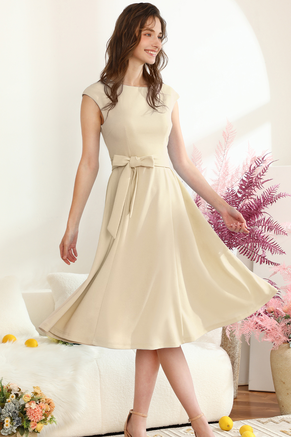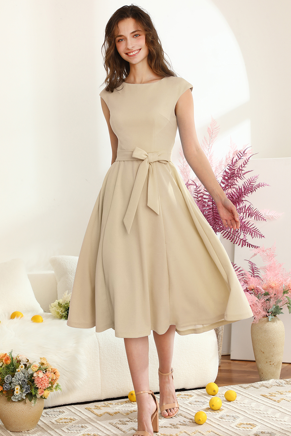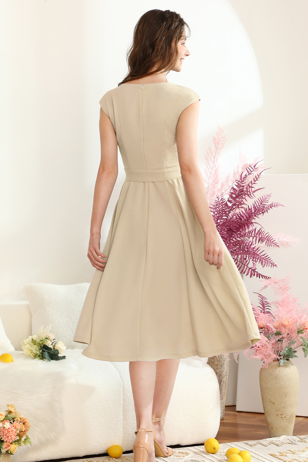 • A-Line Knee-Length Champagne Cocktail Dress with Cap Sleeves, Vintage Style, Unique and Elegant